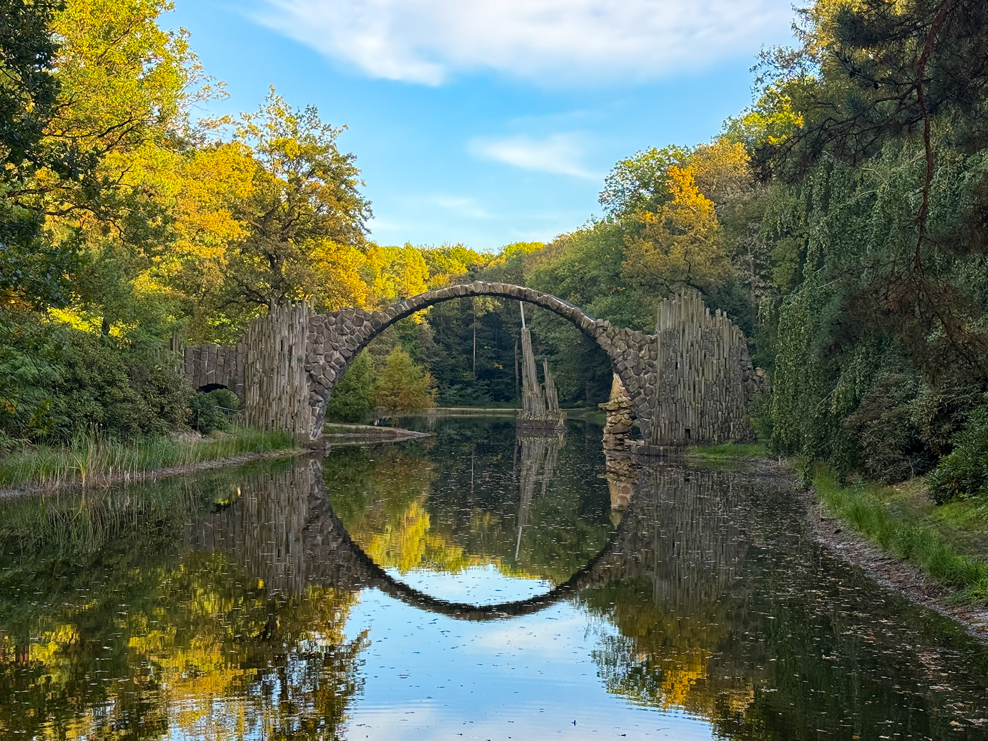Die Rakotzbrücke, auch genannt "Teufelsbrücke" befindet sich im Kromlauer Park im Landkreis Görlitz